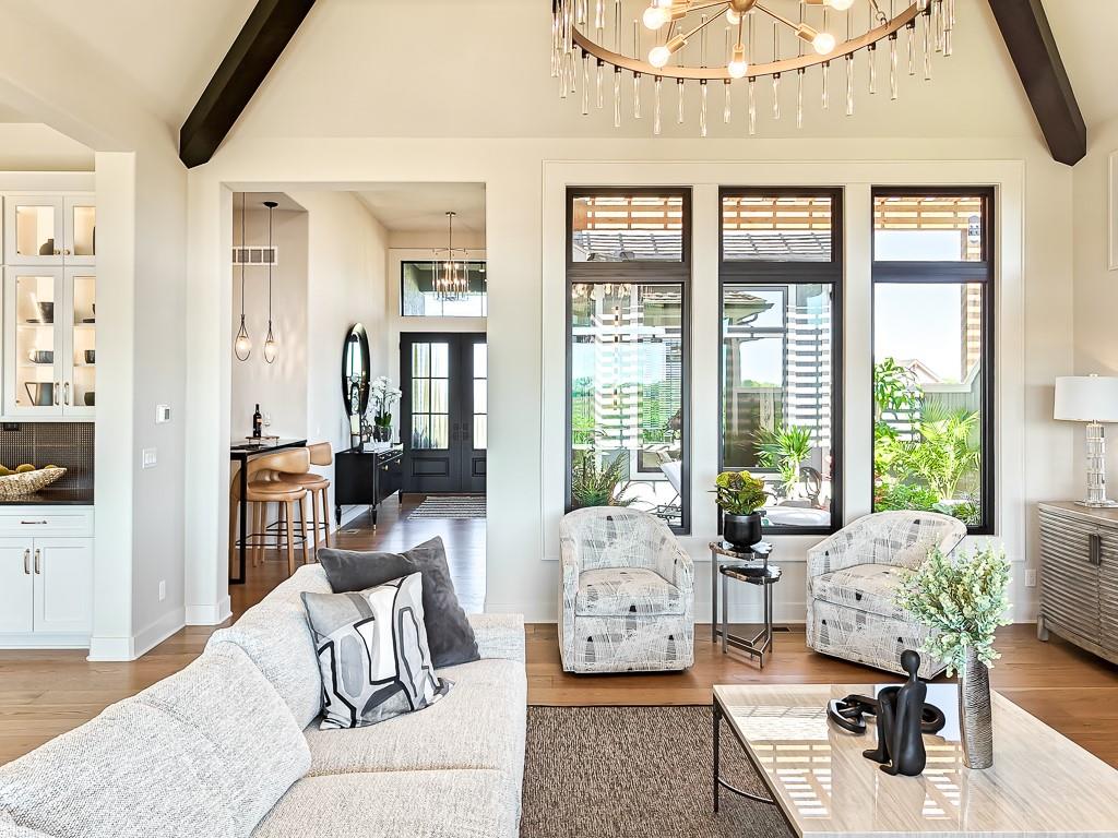 The stunning award winning Courtland Reverse by Don Julian Builders features an innovative layout that welcomes you into a charming pub-style entertaining area and a courtyard with a pergola, along with a front study. Past the courtyard, the spacious family room opens to a large kitchen island and generous walk-in pantry. A private hallway leads to the secluded primary suite and an additional bedroom. The lower level offers an expansive recreation room with a wet bar and two large bedrooms—perfect for guests or family. Sq ft and taxes are estimated and should be verified by Buyer’s agent.