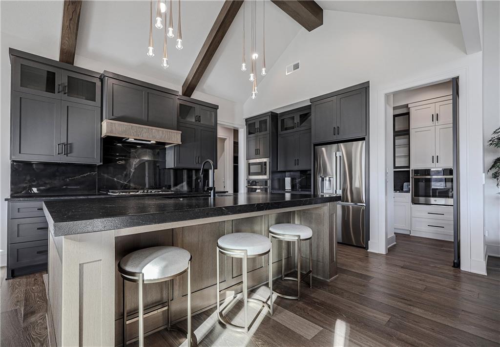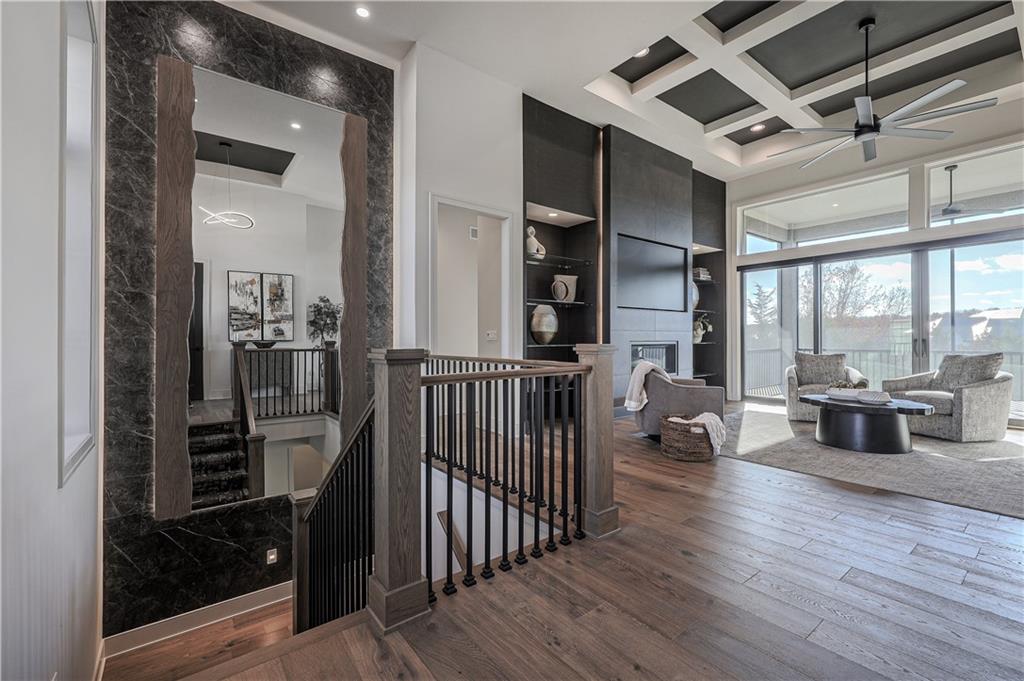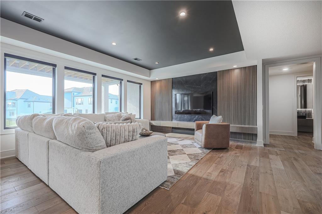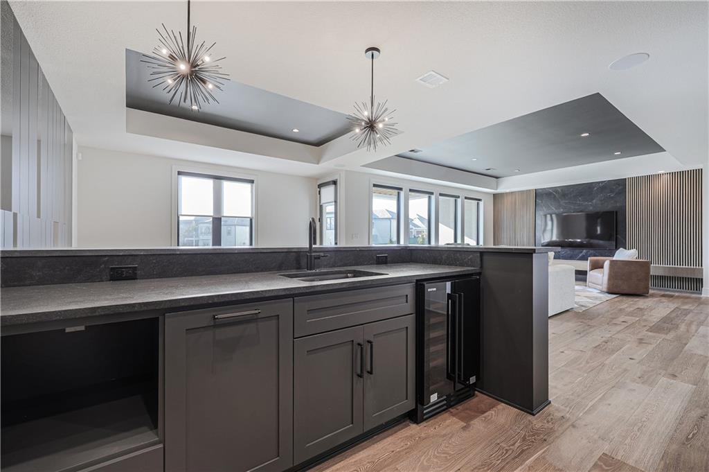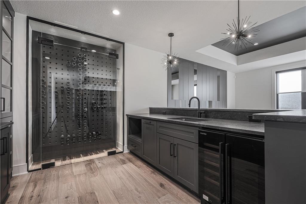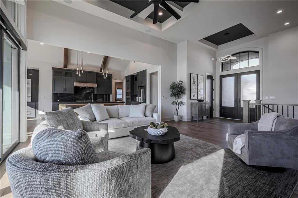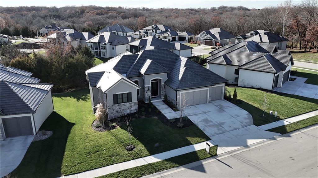 From the moment you arrive, this Casa Bella former model home feels less like a house & more like a private retreat. Set on a wooded lot in The Preserve at Forest Ridge Estates, the Northland’s premier luxury community, you’re perfectly positioned just minutes from Parkville & downtown Kansas City, w/effortless access to MCI airport for quick getaways & seamless business travel. Urban convenience meets serene seclusion in the best possible way. Inside, soaring ceilings in the gathering room draw your eye up, while a wall of windows pulls your gaze out toward the trees & the screened-in covered patio, creating a true indoor/outdoor living experience. The heart of the home is a chef-inspired kitchen that quietly extends into a hidden Caterer’s Kitchen tucked inside a spacious pantry, ideal for hosting holidays, catered events, or intimate dinners where everything feels beautifully orchestrated, & nothing feels cluttered. The owner’s suite is designed as a sanctuary, w/a spa-like bath & a sunlit, generous walk-in closet. An additional main-level bedroom offers versatility as a refined guest suite or an elegant home office, giving you flexible space that adapts to the way you live. On the lower level, the home transforms into an entertainer’s playground. A striking wet bar features a one-of-a-kind wine feature wall & a dedicated wine & beverage refrigerator, opening into an expansive rec room w/a custom entertainment wall perfect for game days, movie nights, or hosting friends. Two spacious bedrooms on this level ensure everyone has their own comfortable, private retreat. A fully suspended (excavated) garage offers exceptional storage or future finish possibilities, whether you imagine a fitness studio, golf simulator, or theatre room. The canvas is yours. With its modern design, curated finishes & unbeatable location near Parkville, downtown Kansas City, and MCI airport, this residence is more than a home; it is a lifestyle, waiting for its next chapter